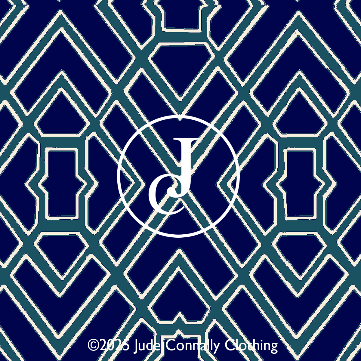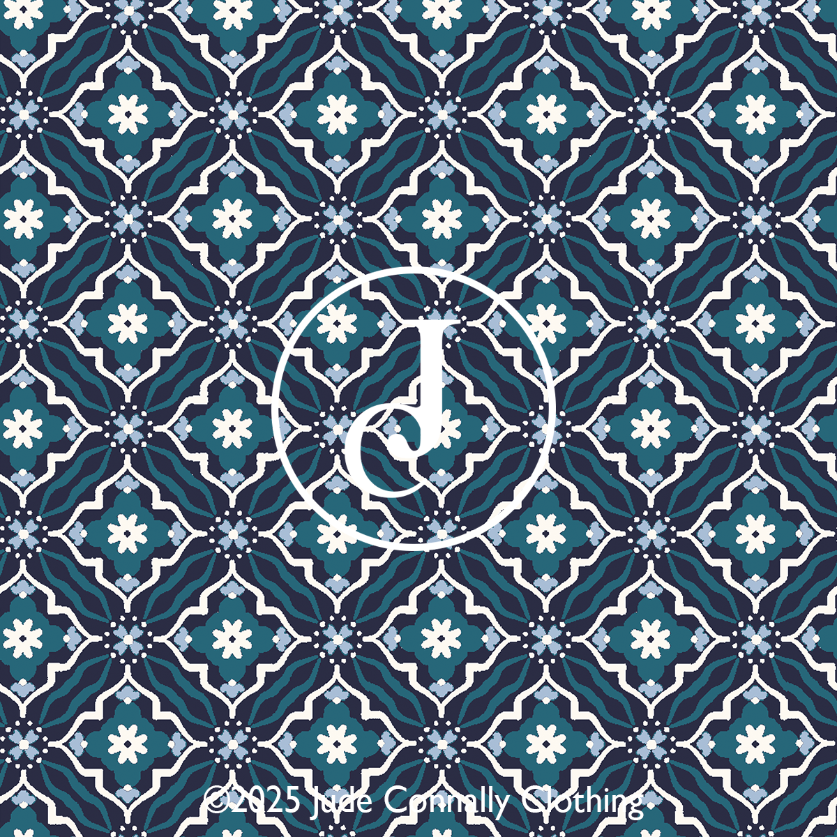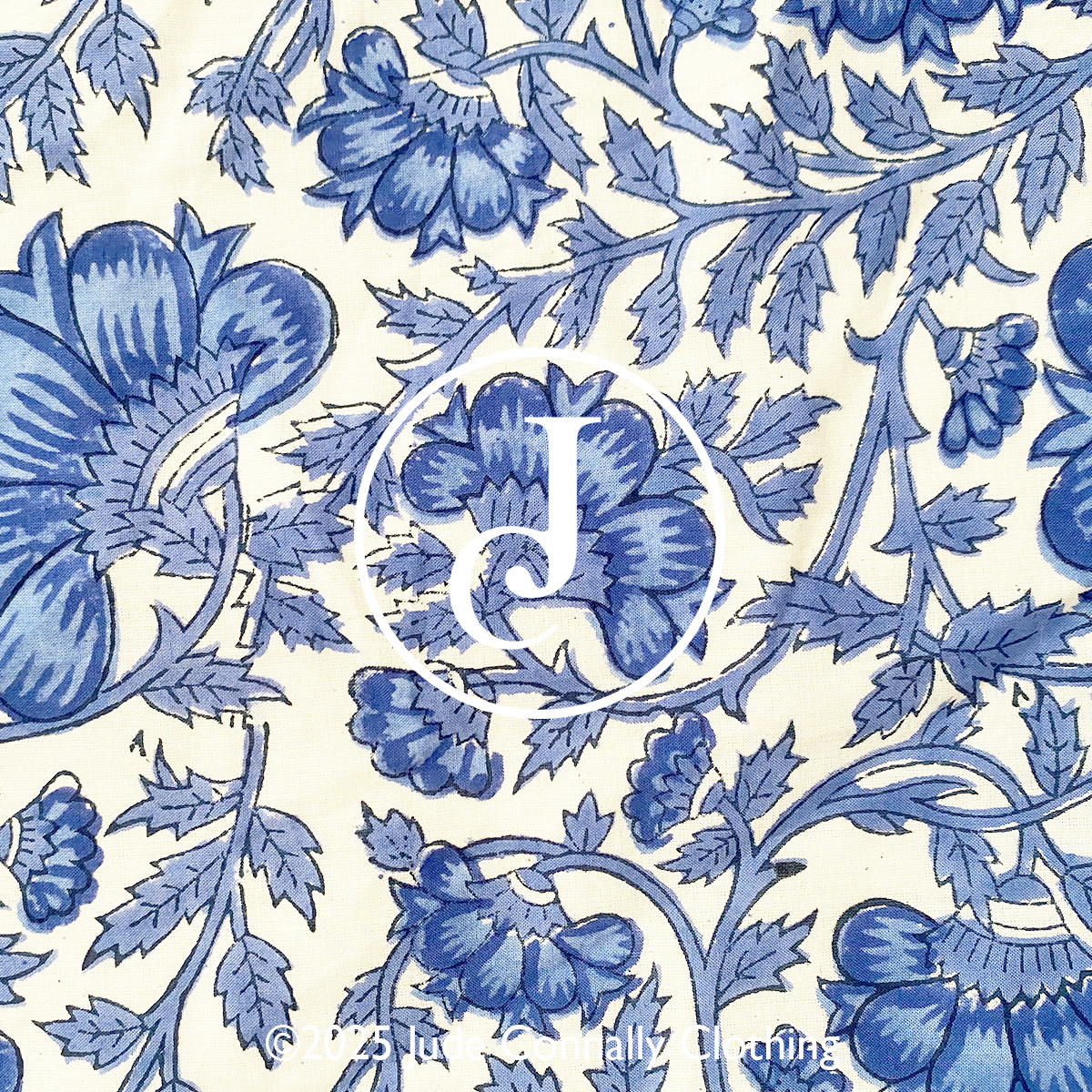 and modern layered look. Bold floral patterns in navy, accented with bright